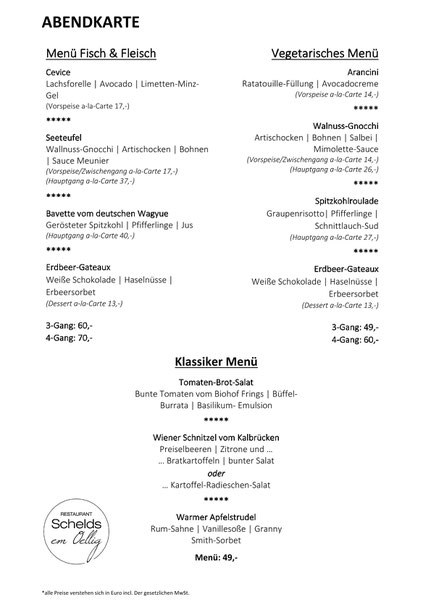 Weitere, raffinierte Kreationen von Alexander Scheld sind auf der monatlichen, saisonalen Menükarte zu finden.